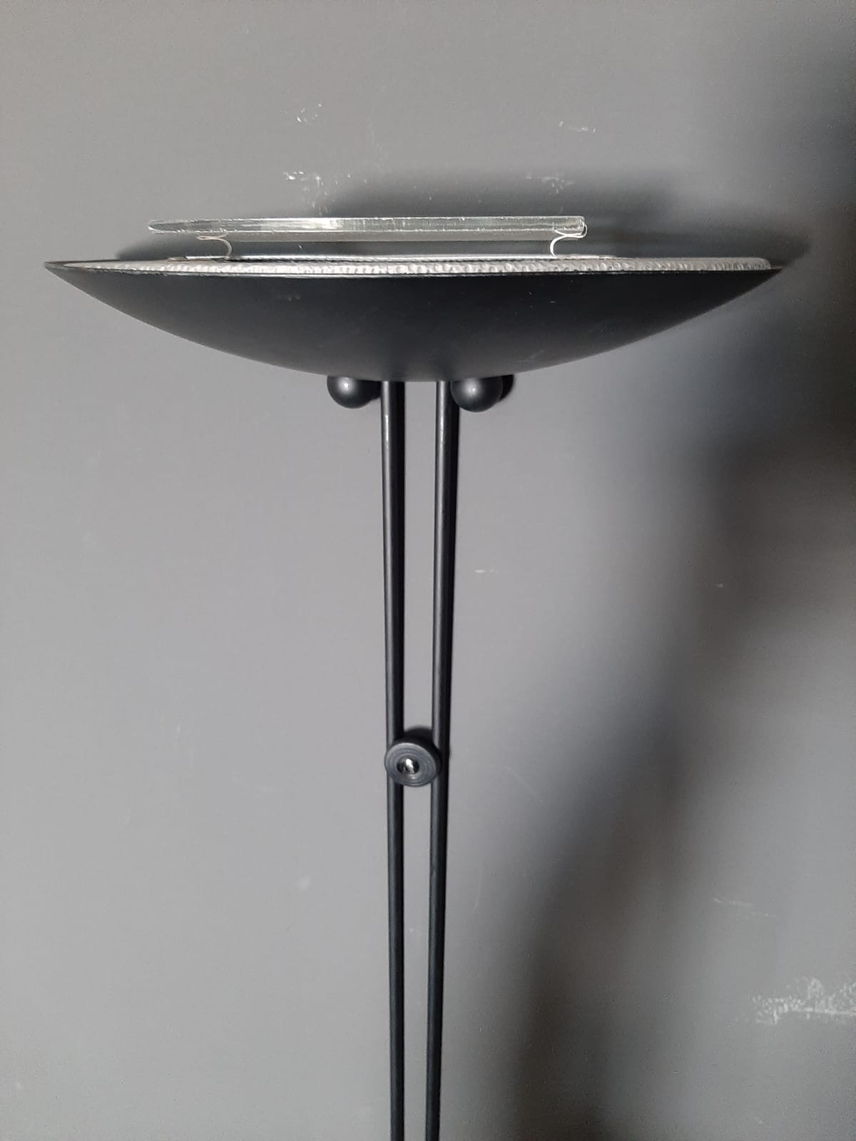 La Lampada da parete Saucer, prodotta da Lumen Center, è un elemento di design contemporaneo che combina eleganza e funzionalità. Caratterizzata da linee essenziali e una forma circolare, richiama l’estetica minimalista, integrandosi perfettamente in ambienti moderni. Il diffusore a forma di “sottile disco volante” (da cui il nome Saucer) crea un’illuminazione soffusa e omogenea, ideale per creare atmosfere rilassanti. Fu una lampada innovativa in quanto la prima da parete a stelo: si fissa a parete ed i due lunghi steli portano l’alimentazione verso il pavimento, permettendone i collegamento ad una qualsiasi presa di corrente.
